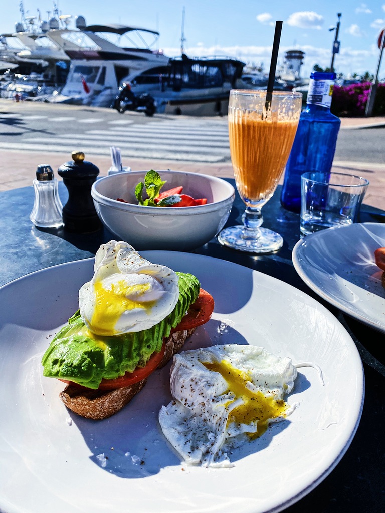 Para ser noviembre el tiempo me acompañó a la perfección y pude disfrutar de un maravilloso desayuno frente al mar y tomando el sol, maravillosa combinación nutriendo mi cuerpo con un desayuno precioso, mi vista mirando al mar y mi piel tomando el sol y sintetizando la vit D…..